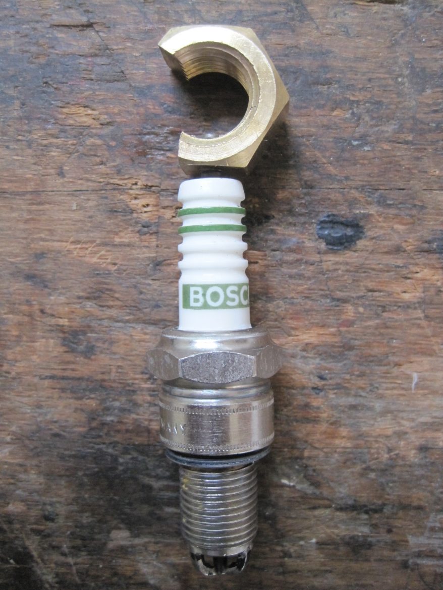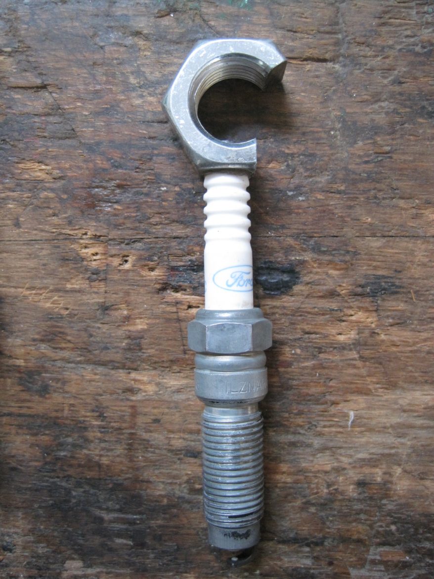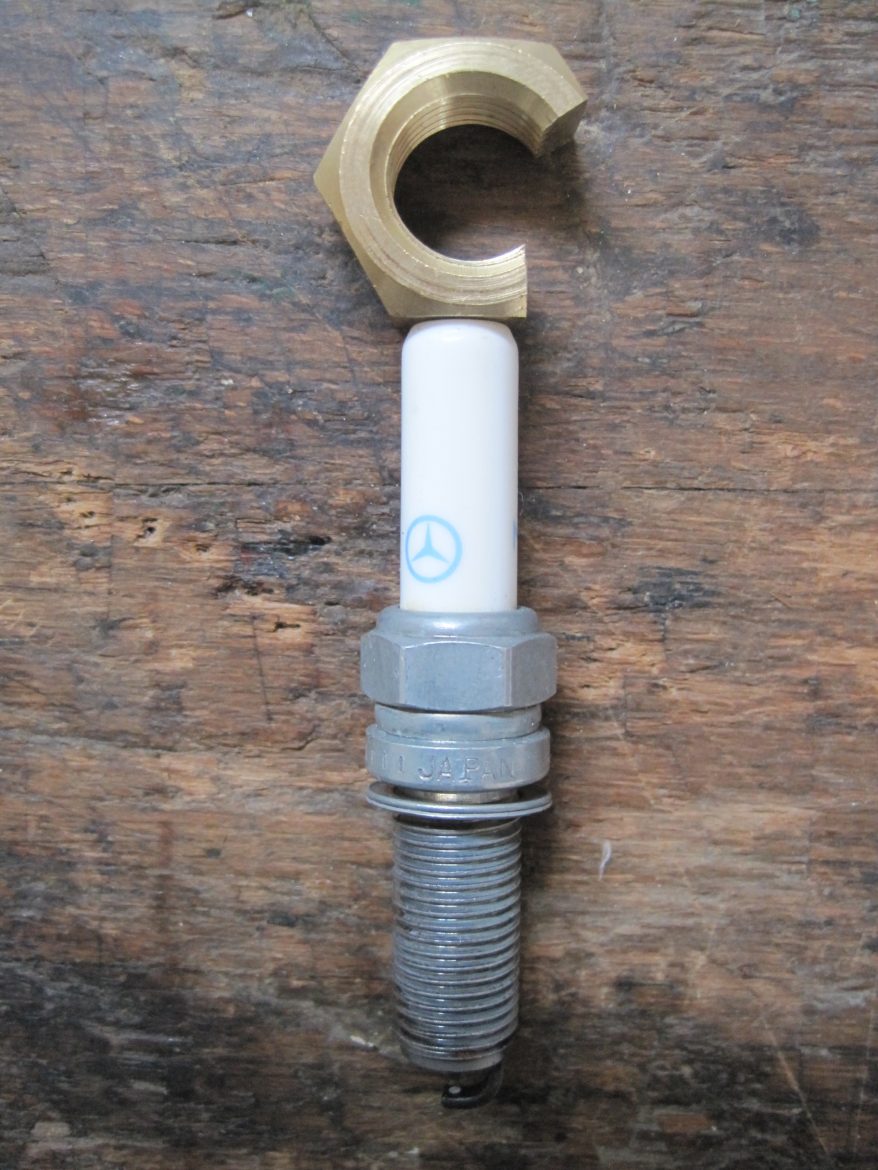 Der Flaschenöffner besteht aus einer alten Zündkerze, die garantiert mindestens 30.000 km und mehrere Millionen Zündfunken hinter sich hat und einer Messing- oder Stahlmutter, die nur darauf wartet nach Feierabend das erste Bier zu zünden (Anmerkung: wir haben´s ausprobiert, der Öffner funktioniert auch bei anderen Getränkeflaschen, sogar bei alkoholfreiem Bier).