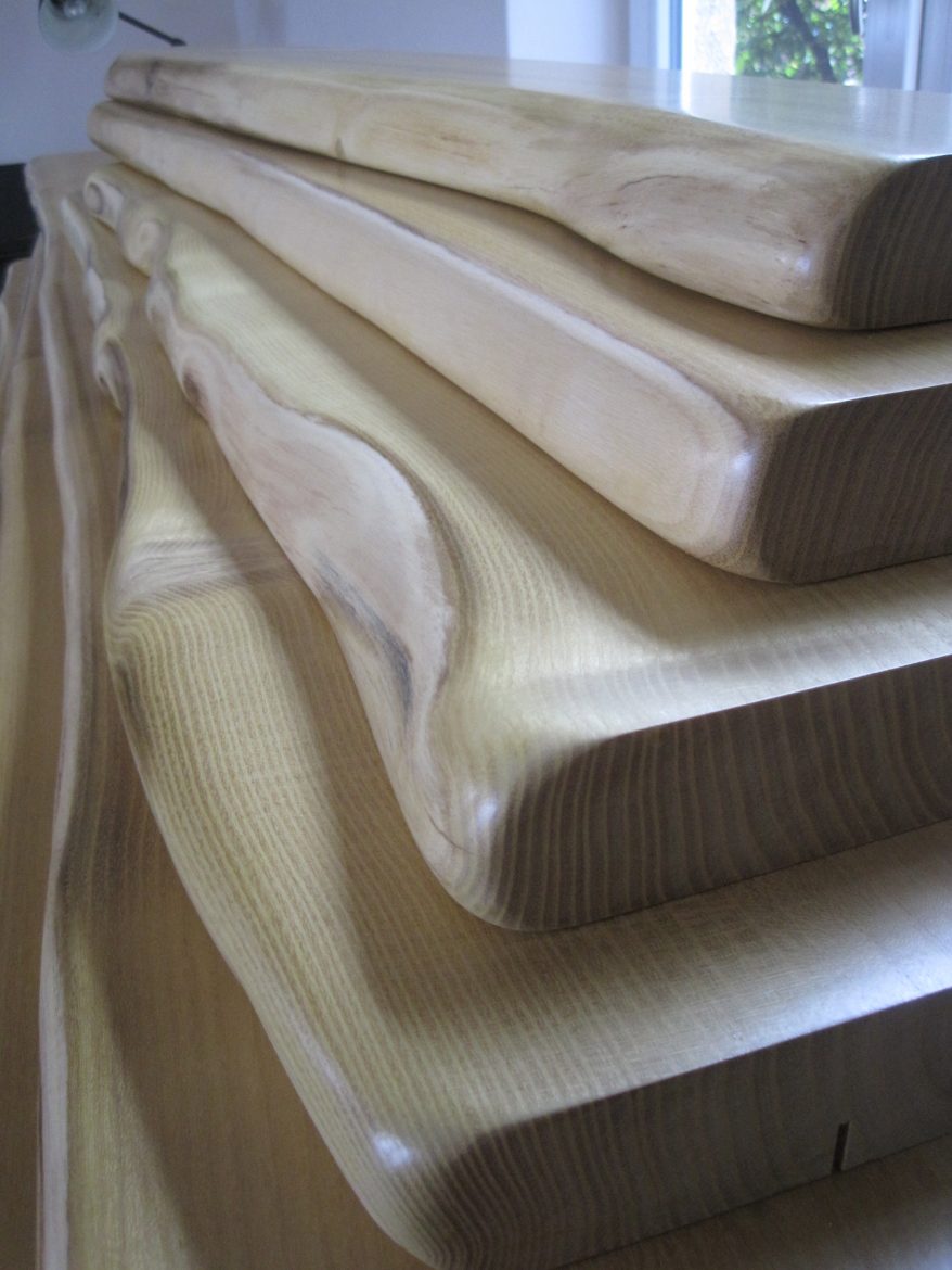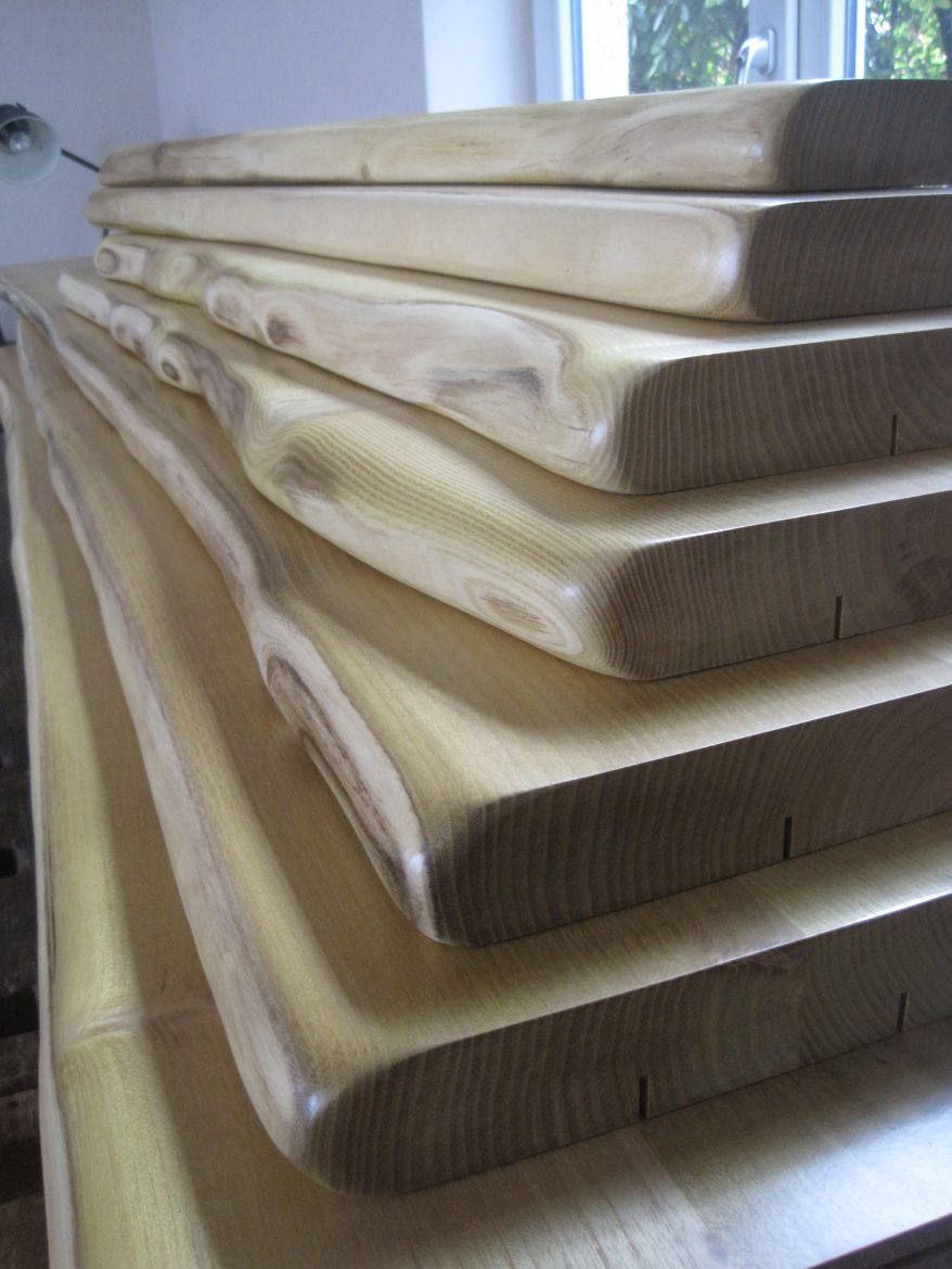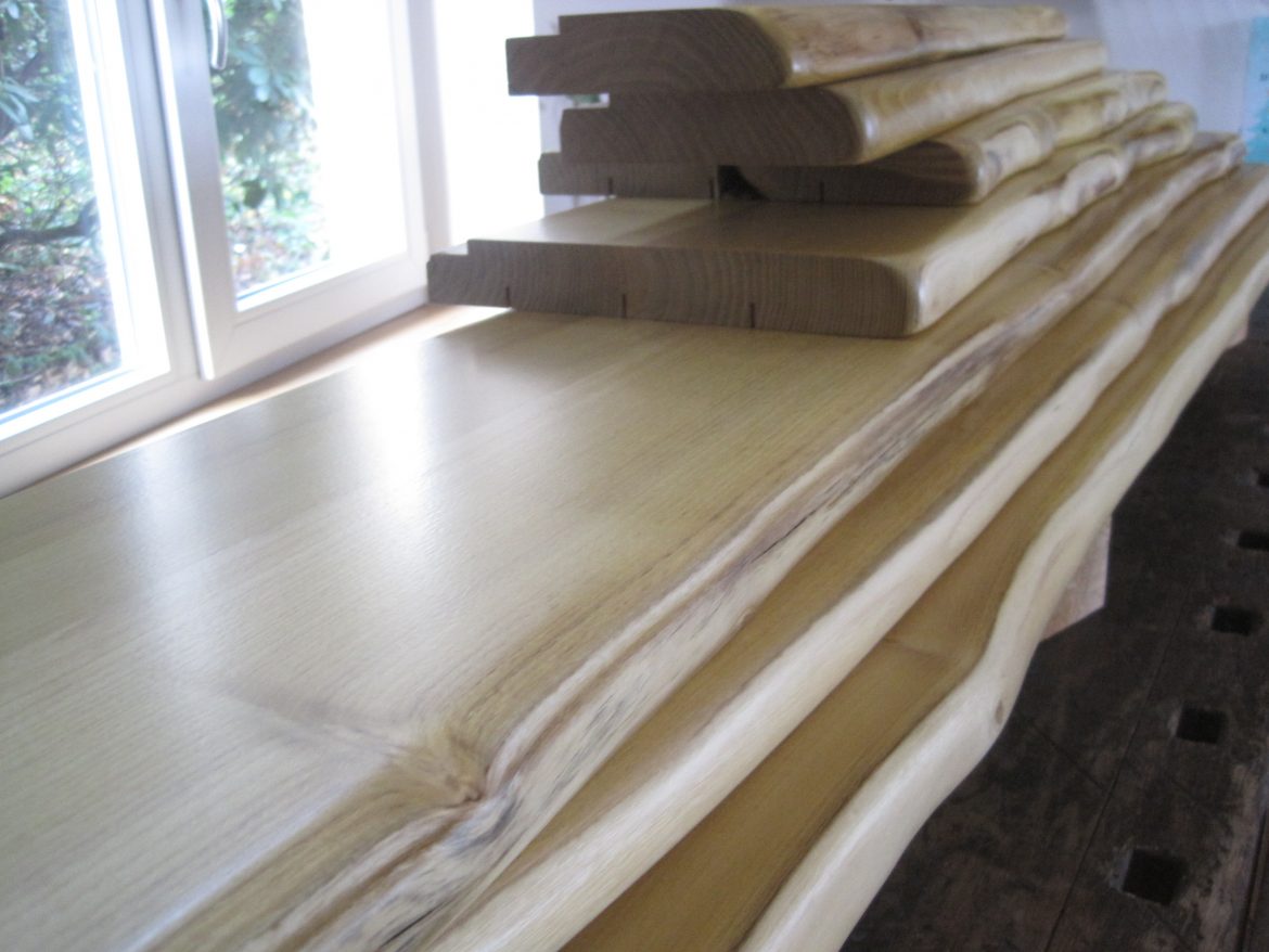 Holzfensterbänke und Massivholzplatten aus massiver Robinie mit natürlicher Baumkante und Live Edge.