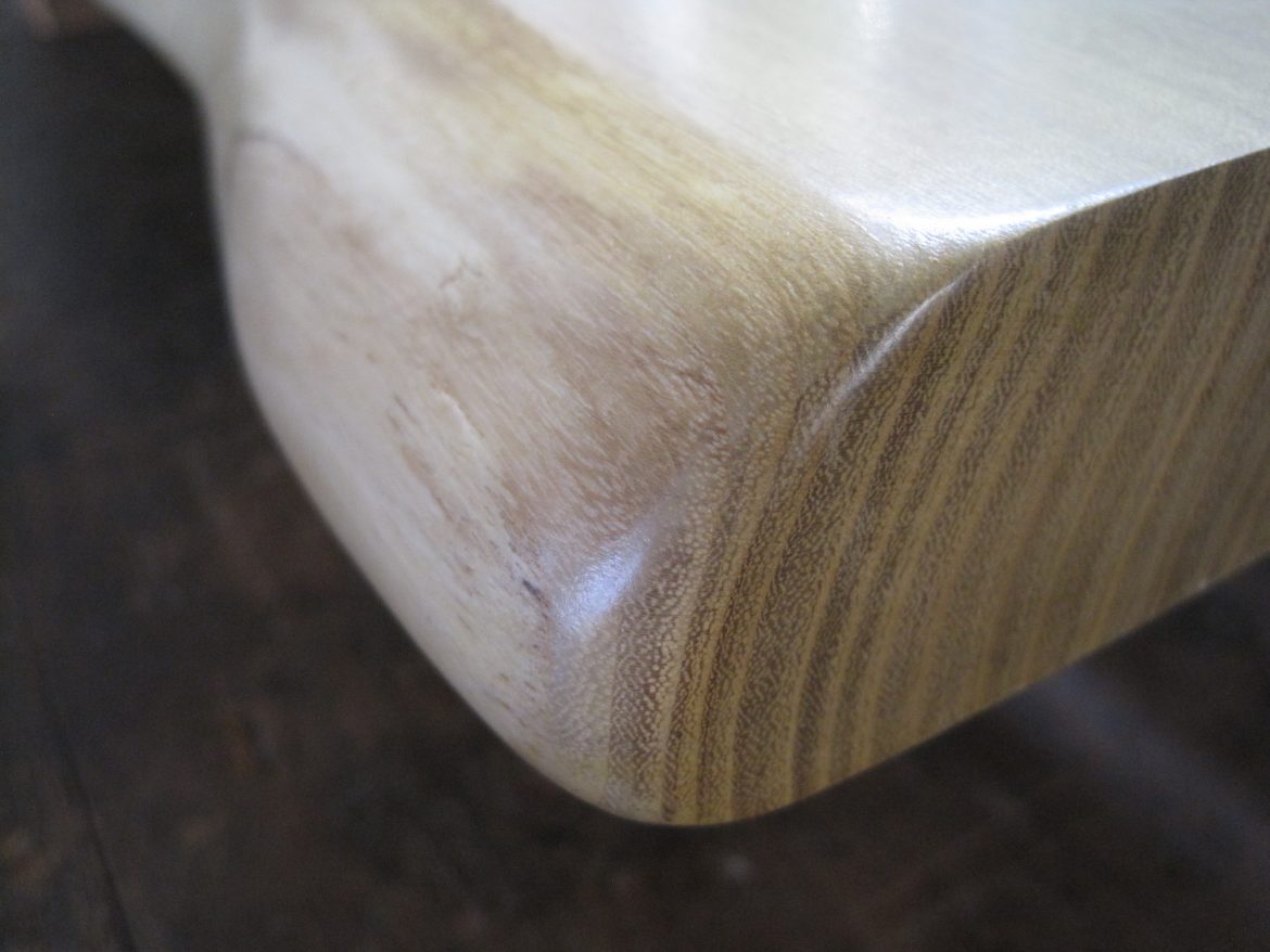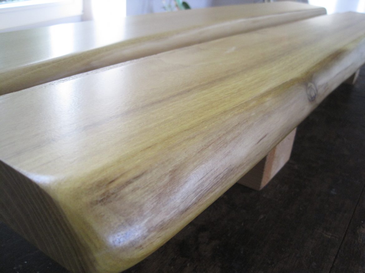 Die Robinie, auch als falsche Akazie bezeichnet, ist eher durch einen gebogeneren Wuchs und wildere Baumkante gekennzeichnet, wodurch ein verleimen in der Tiefe schon bei geringeren Tiefen notwendig werden kann. Das Holz wird sorgfältig per Hand abgerundet und mehrfach geschliffen. Anschließend wird das Fensterbrett mit einem wasserbasierten Fußbodenlack versiegelt wird. Auf der Unterseite werden, sofern nicht anders bestellt, Enspannungsschnitte platziert.